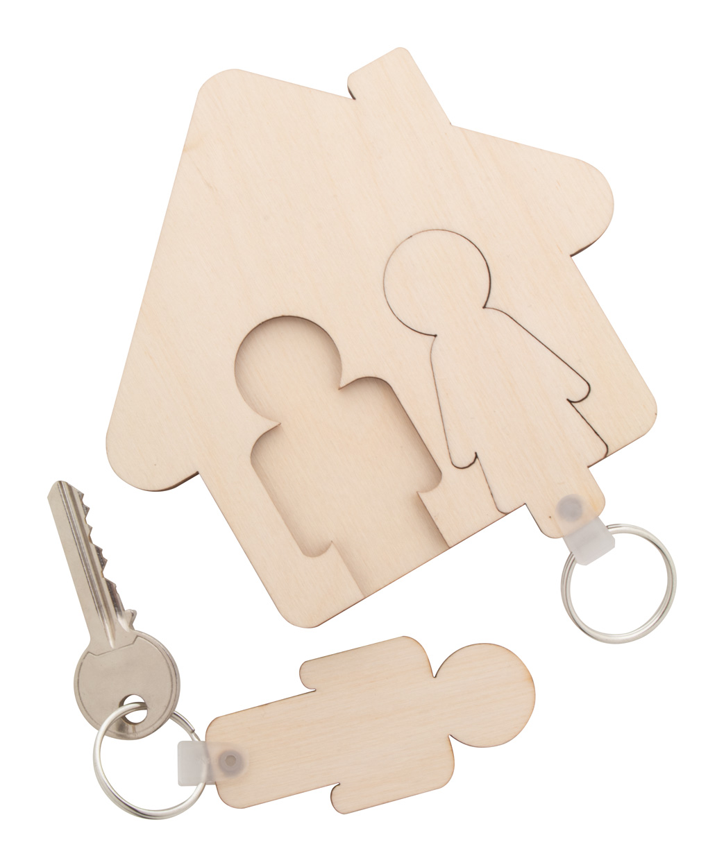 House shaped, wall key holder with 2 removable keyrings in couple design. Made of birch plywood.