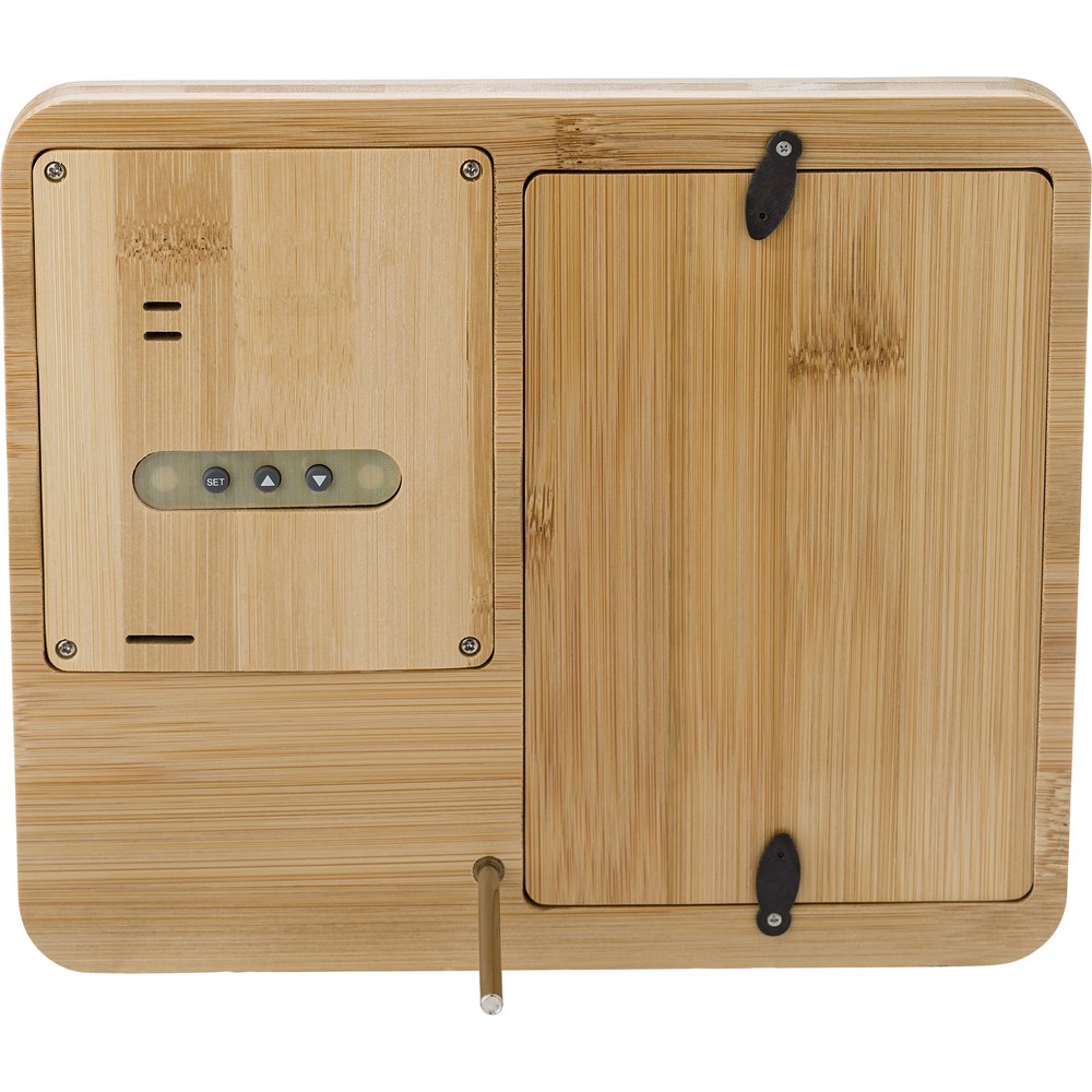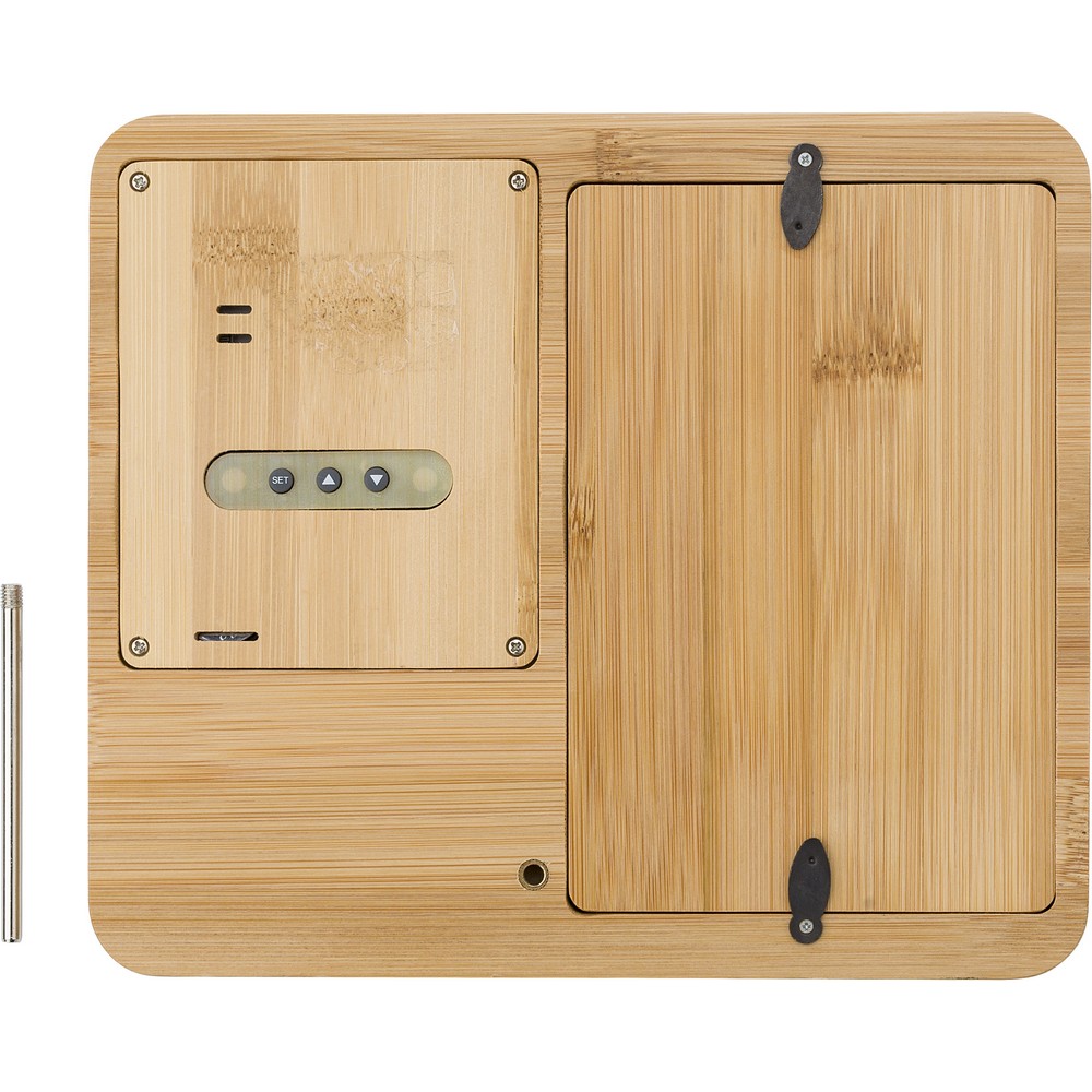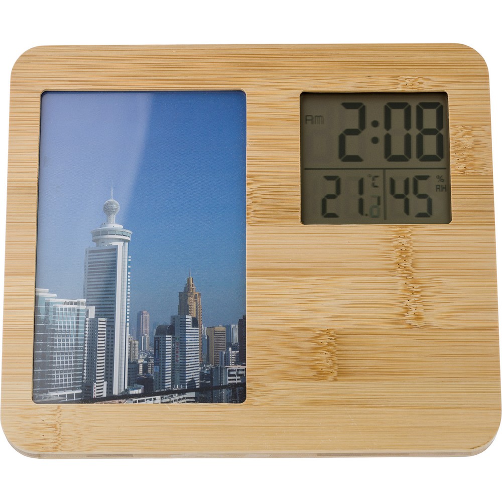 Bamboo weather station with photo frame, functions: clock, temperature, humidity
