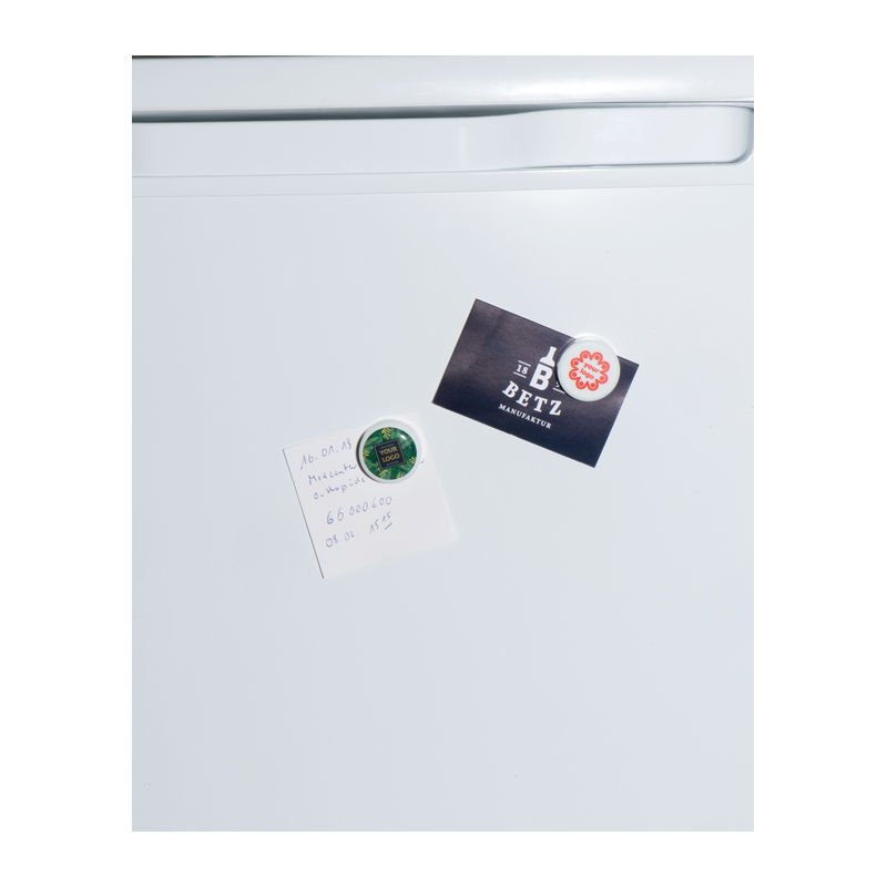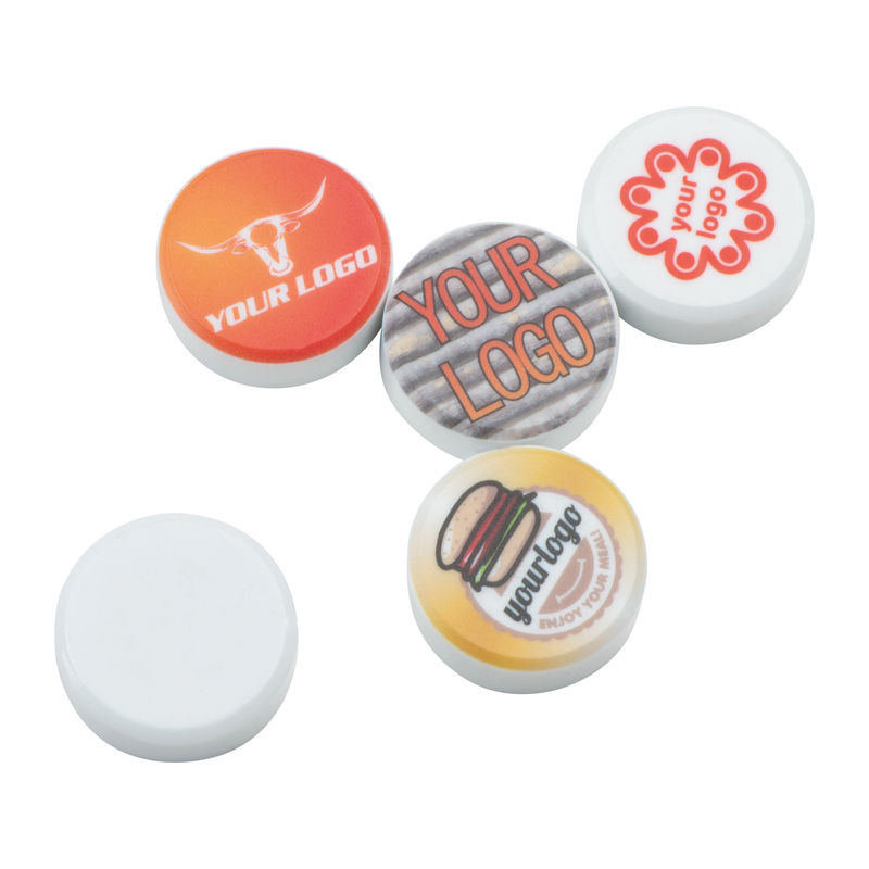 Round plastic magnet for a full digital printing.