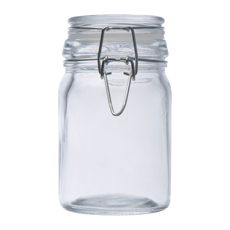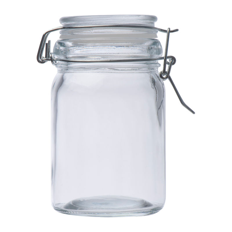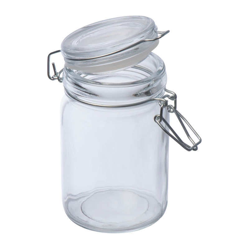 Storage jar made of borosilicate glass (200ml) with swing top. Perfect for storage. We laser your logo onto the glass.