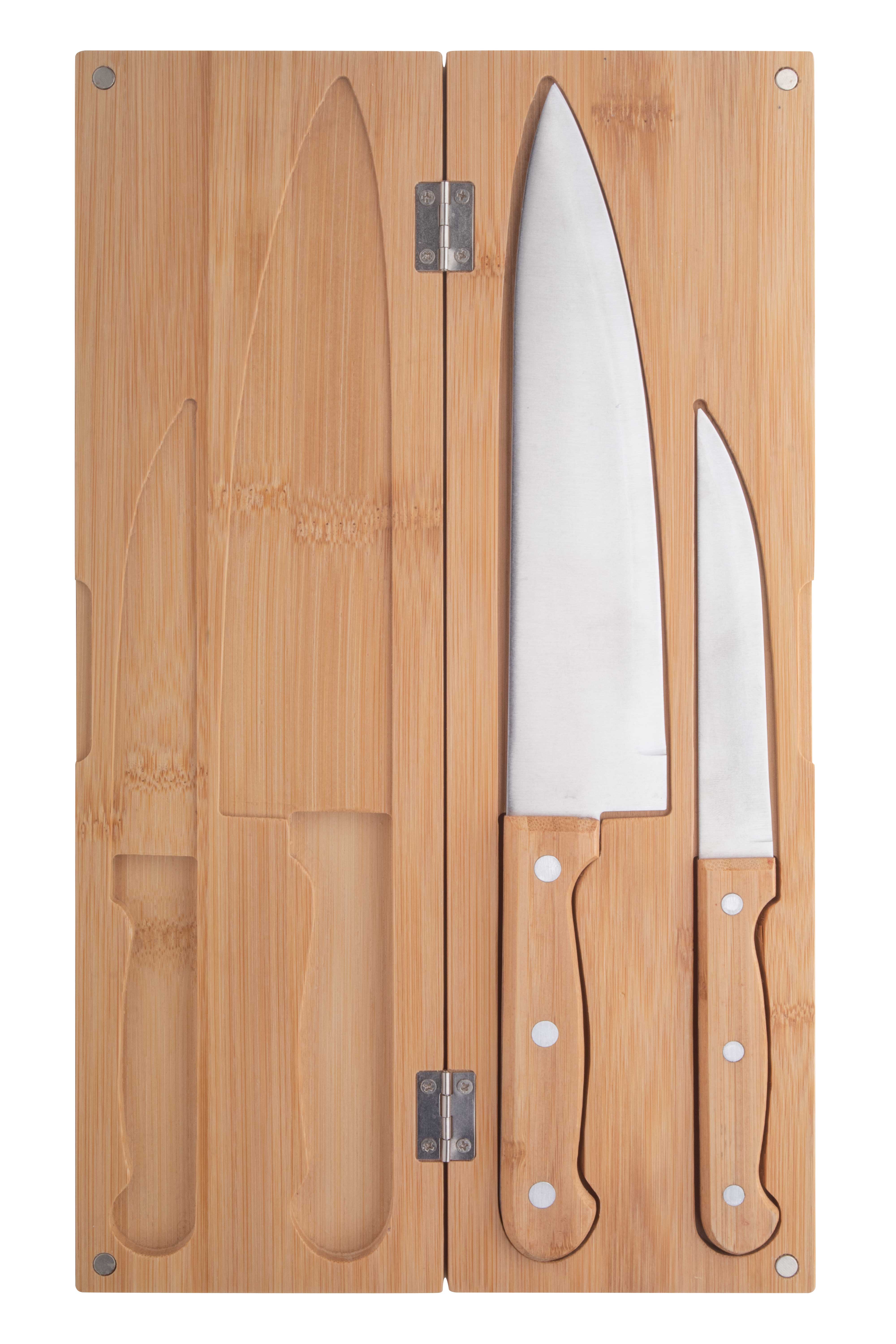 2 pc stainless steel knife set with bamboo handles. In bamboo box with magnetic closure.
