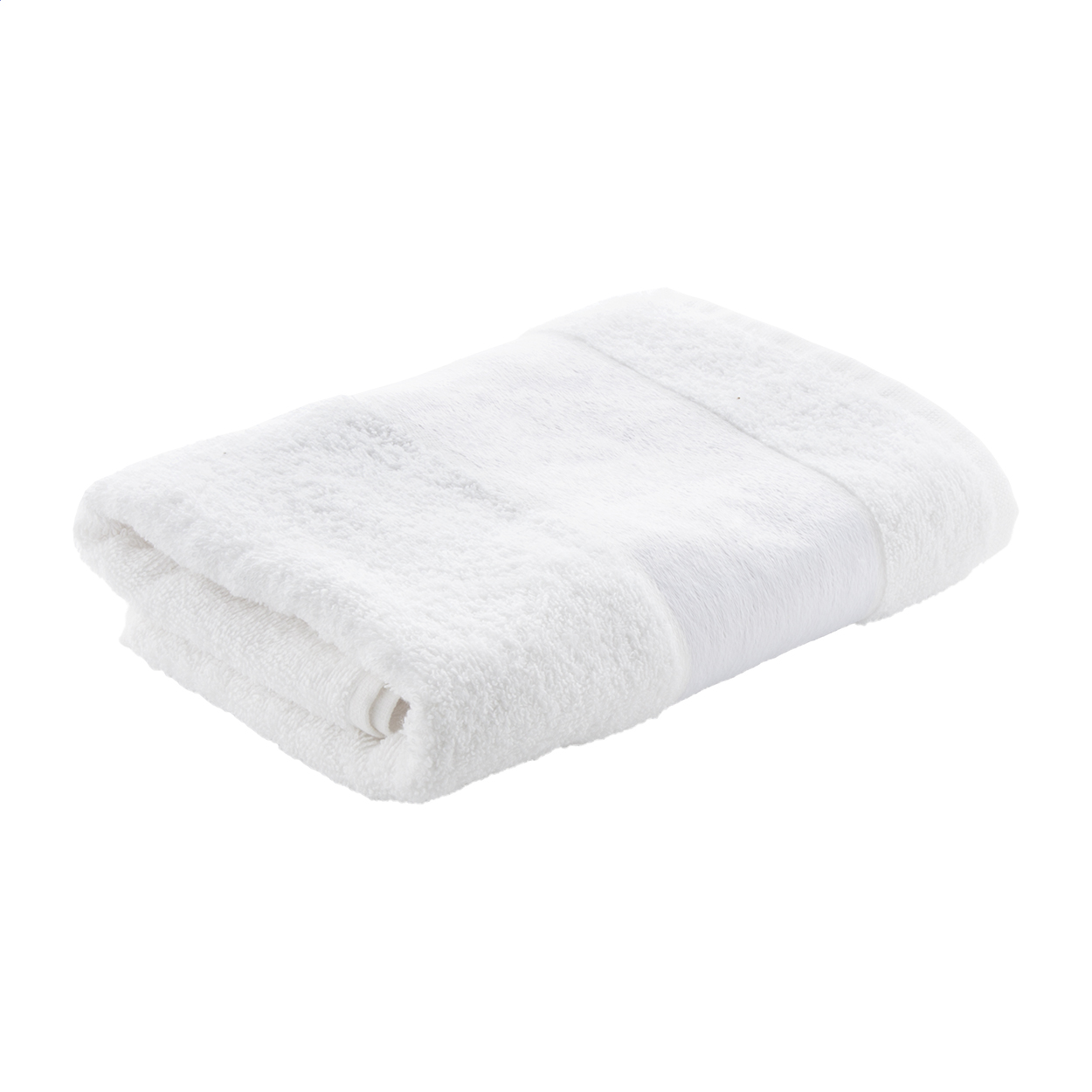 100% cotton, 400 g/m² terry towel with polyester border for sublimation printing. Price includes sublimation printing. MOQ: 25 pcs.