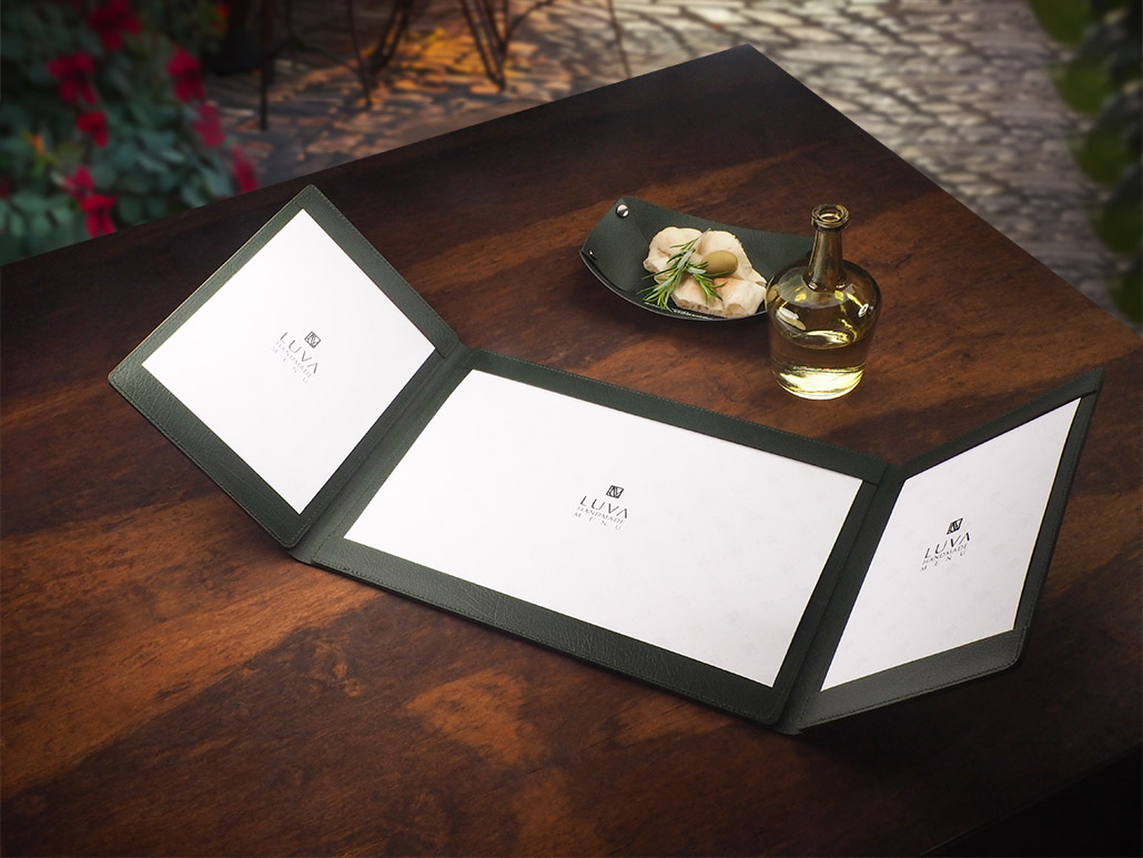 Holds A4 sheetsHolds A5 sheets of paperImpregnated leather - does not absorb water