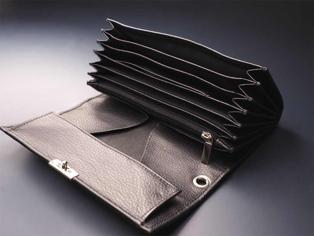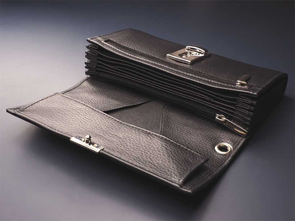 2 zippered pockets7 pockets for banknotesCoin pocket Zipper closureCarabiner's chain