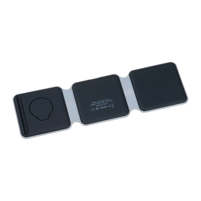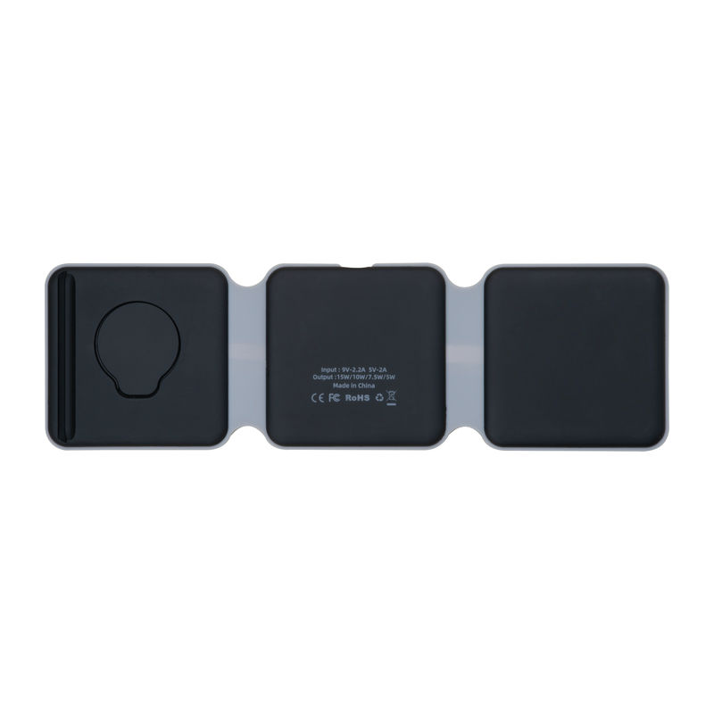 Practical 3 in 1 wireless charger with which you can easily charge 3 devices at the same time (mobile phone, headphones and smart watch). We print your logo on the back.