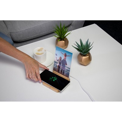 Bamboo wireless charger 10W, photo frame (10 x 15 cm), USB type C input, USB type C cable included