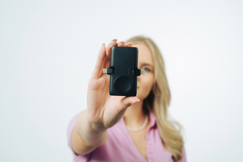 Carry 20W portable power in your pocket and be ready to fast charge on the go wherever you are! Urban Vitamin San Diego is a lightweight but powerful 5000mAh power bank. With dual fast charging options to re-charge via the integrated iOS connector (for iPhone 14 and older) and state-of-the-art Type-C output, you can charge your phone without the need to bring any cables! You can even charge two items at the same time. All outputs offer ultra-fast 20W charging to re-charge up to 50% in less than 30 minutes. Beside two integrated connector the item also has a USB C input port to fast re-charge the powerbank. It comes with an integrated watch charger to charge all recent Apple watch models. It also features an integrated stand to charge your phone while watching movies or listening to music. Made with RCS recycled ABS and recycled PC, the total recycled content is 24% based on total item weight. PVC free and plastic packed in plastic reduced box.