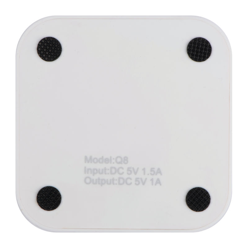 Plastic wireless charger with 2 USB ports, charging cable included. Charges all QI enabled smartphones. Your logo will be printed on the device.
