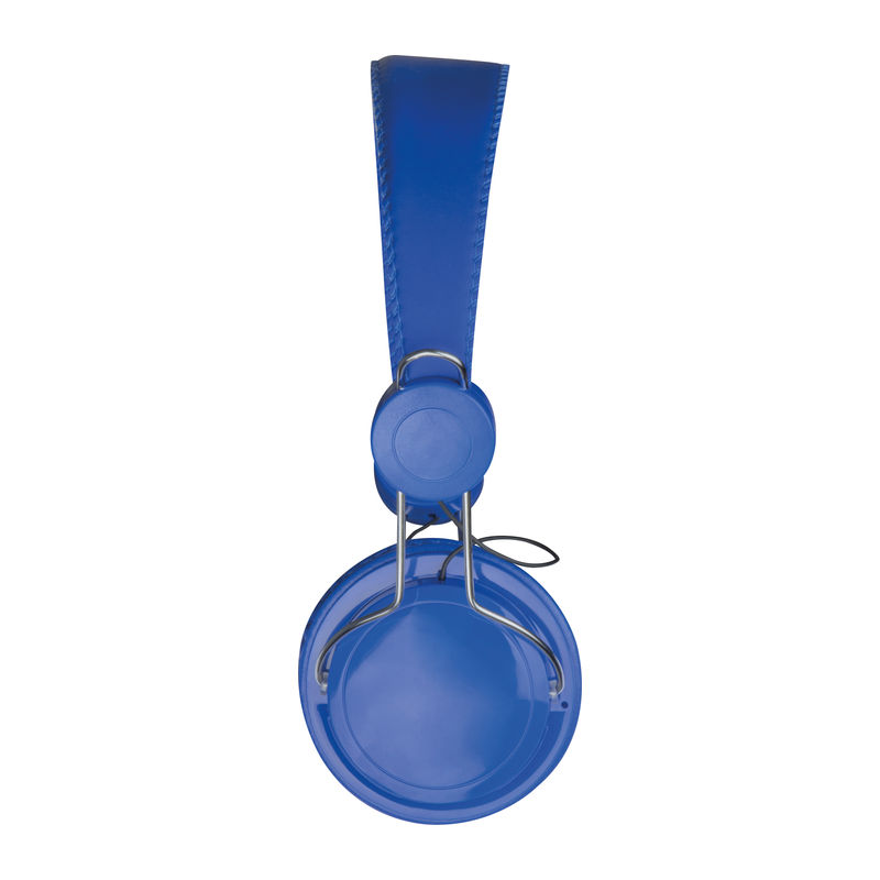 Earphones featuring a headband, adjustable ear pieces, and volume control on the cable. Your logo can be printed on one earpiece.