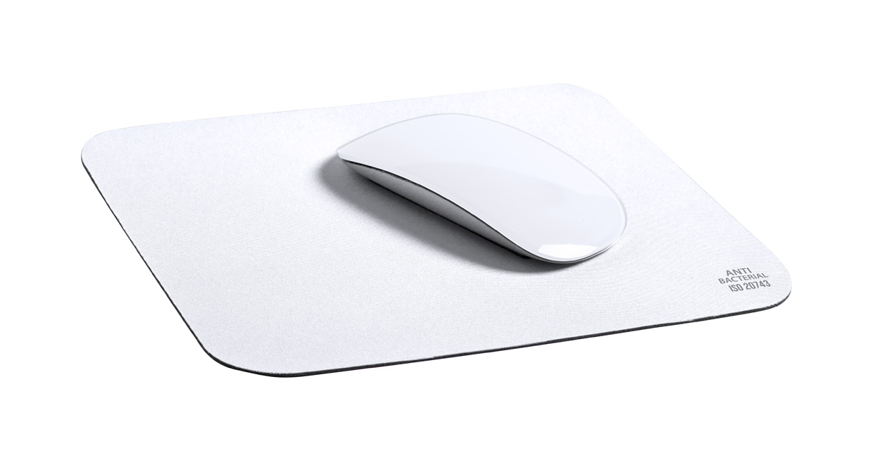 Antibacterial mousepad in polyester with silicone anti-slip base. ISO 20743 compliant.