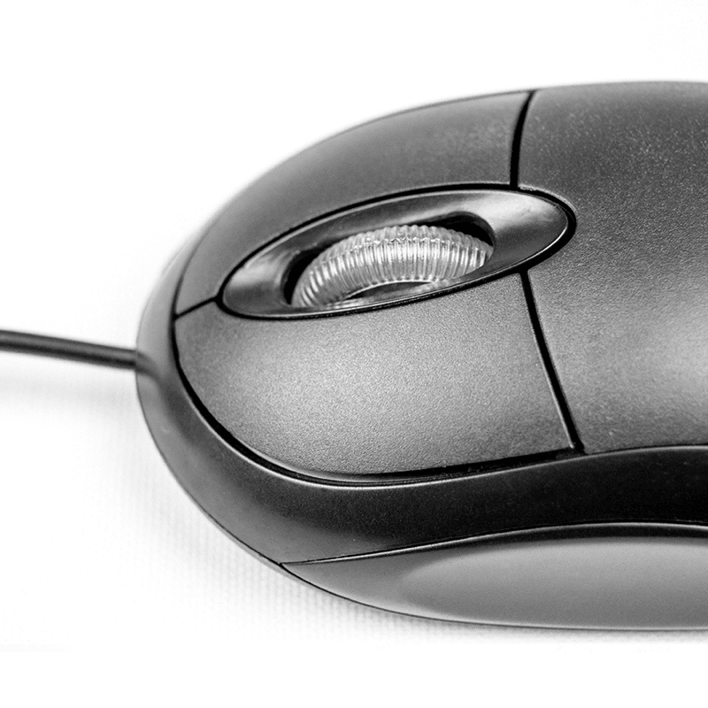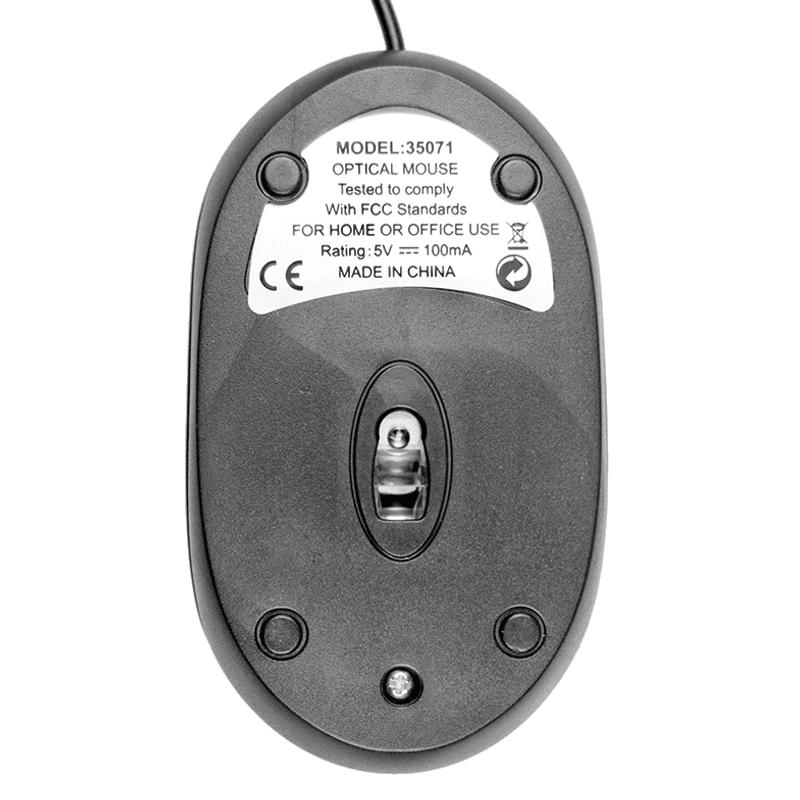800 DPI oval optical mouse with black coloured cable, two buttons and central scroll wheel. Digital printing possible.