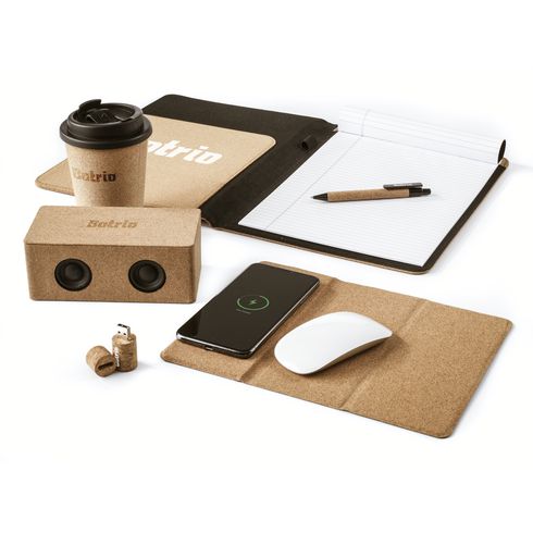 Multifunctional, wireless 10W charger mousepad. The exterior of this modern mousepad is made from eco-friendly cork. You can effortlessly navigate your mouse and charge your smartphone on this cork mouse pad. Can also be used as a phone stand. Compatible with all mobile devices that support QI wireless charging (newest generations Android and iPhone). Input 9V/2A. Wireless output 5V/10W. Includes PVC-free cable (TPE) with micro-USB connector and user manual. Each item is supplied in an individual brown cardboard box.