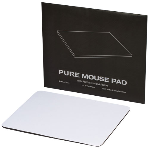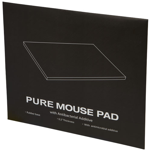Mouse pad with anti-bacterial additive and a 5 mm Polymerized Styrene Butadiene Rubber (SBR) anti-slip base, keeping the mouse pad in place. The additive is able to effectively reduce the bacterial levels present on the surfaces of the material, with high effectiveness in inhibiting the growth of bacteria and fungi responsible for creating unpleasant smells, staining and degradation of textile and plastic products. Tested according to ISO 20743:2013.