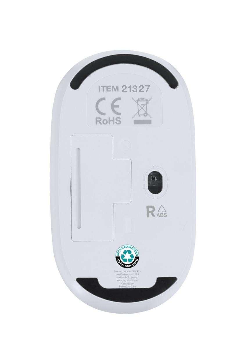 Wireless optical mouse in recycled ABS plastic and recycled aluminium housing. Operates with 1AA battery, delivered without battery.