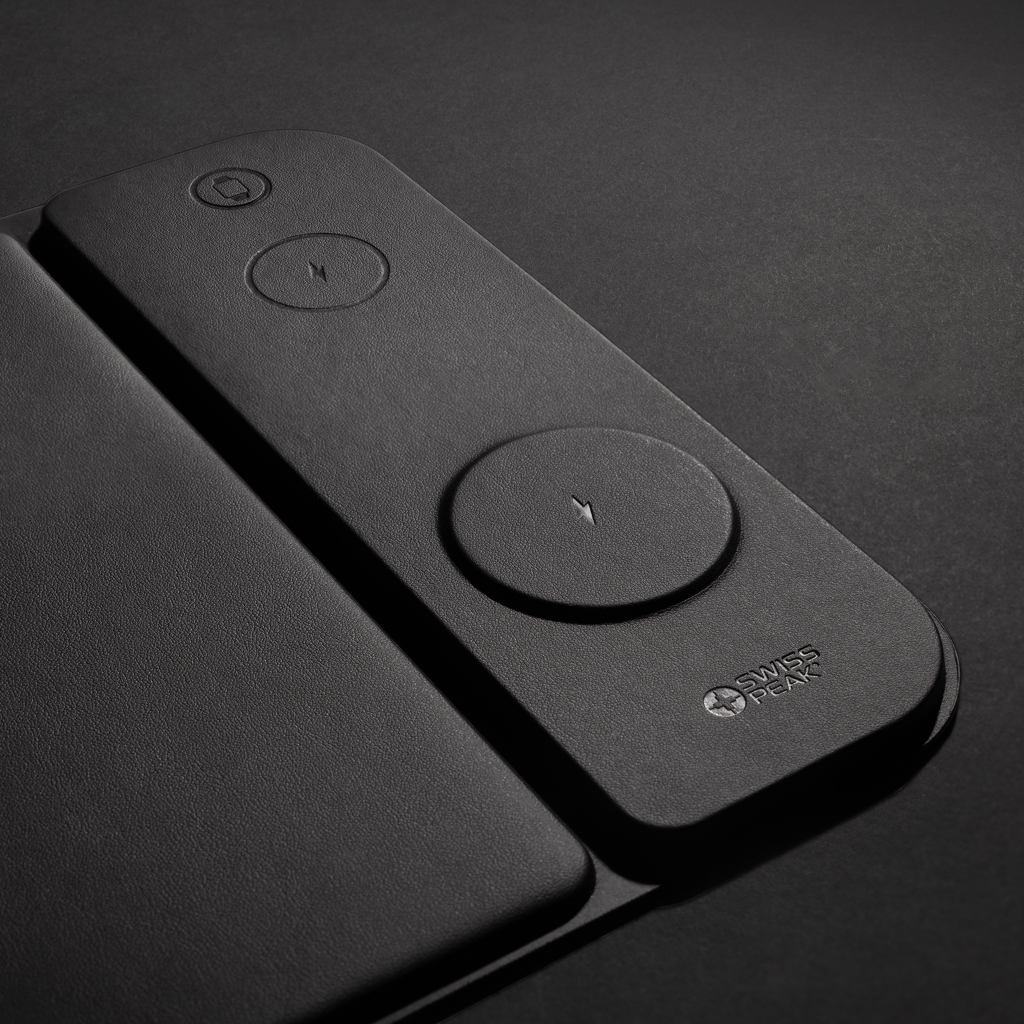Swiss peak RCS recycled PU 15W 3 in 1 charging mousepad