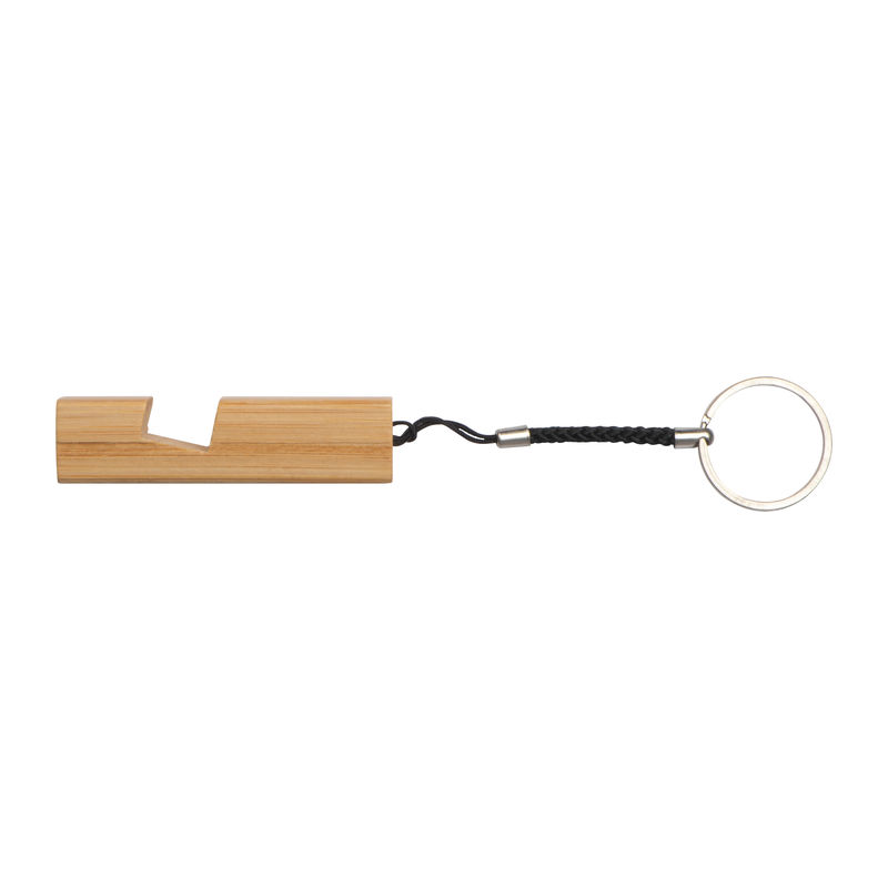 Bamboo pendant with key ring and cord that can also be used as a mobile phone holder. Your logo will be engraved onto the bamboo surface.