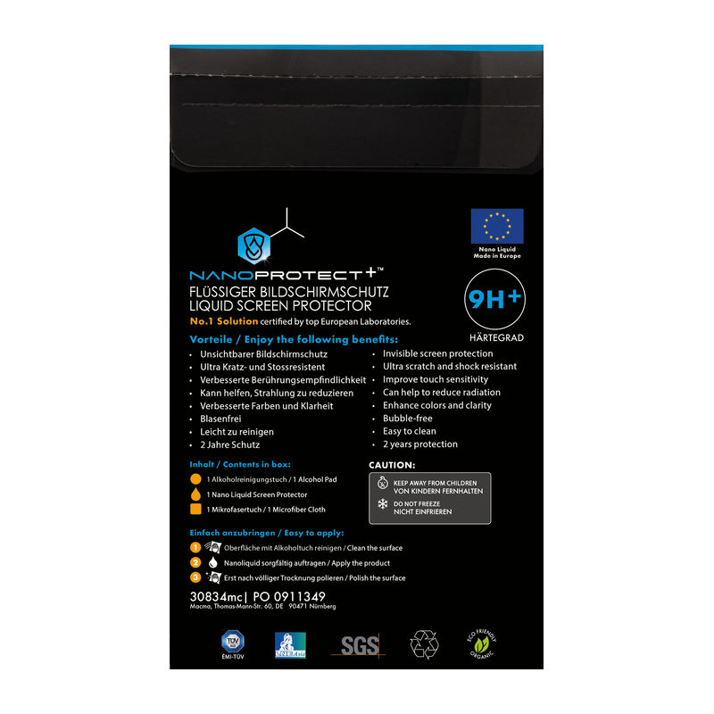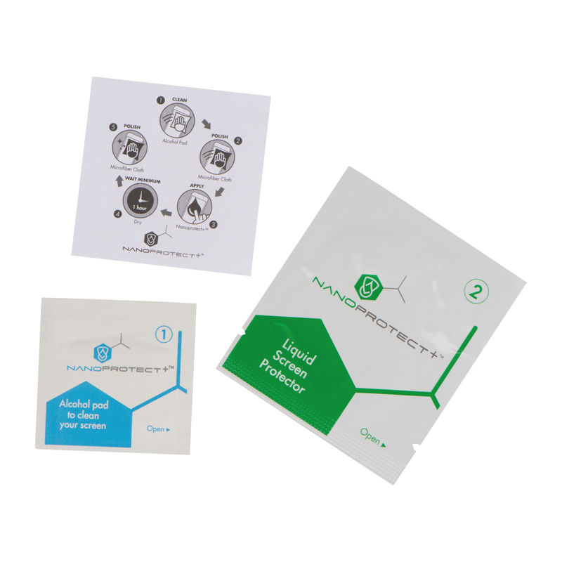 Liquid screen protector for smartphones, smartwatches, and tablets. The liquid glass seal makes your display a lot more resistant than a protective film and is completely invisible. We will print your logo on a label on the box.