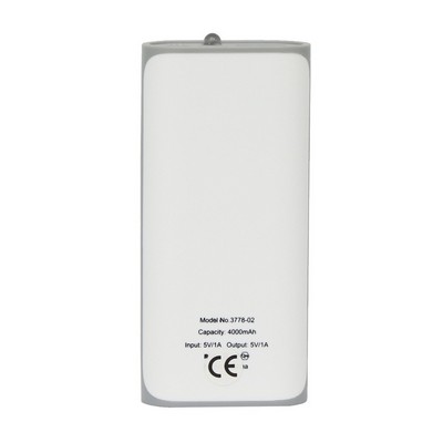 Power bank 4000 mAh, output 5V/1A, input 5V/1A, 4 diodes indicating power level, LED light, micro USB cable included