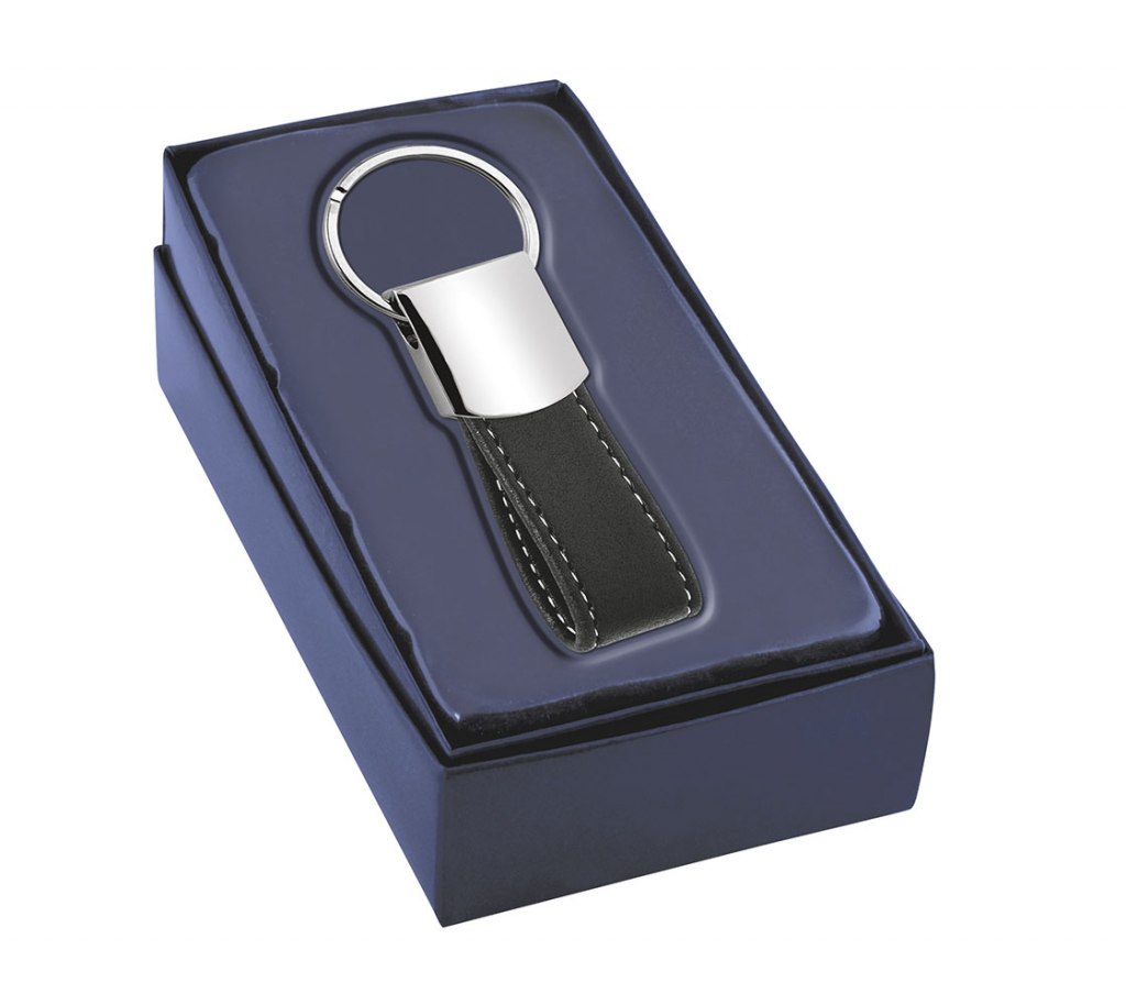 KEYCHAIN PU BLACK WITH WHITE STITCHING