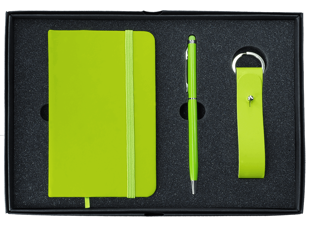 Contains Touch PenContains leather keyringIncludes A6 notebookPaper box included