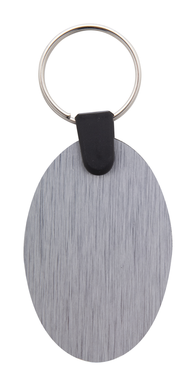 Oval shaped, brushed aluminium composite keyring with full colour printing. Price includes UV LED printing on one side. MOQ: 100 pcs.