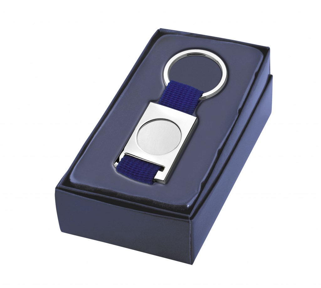 KEY CHAIN FABRIC BLUE SATIN HOLE 25 MM
