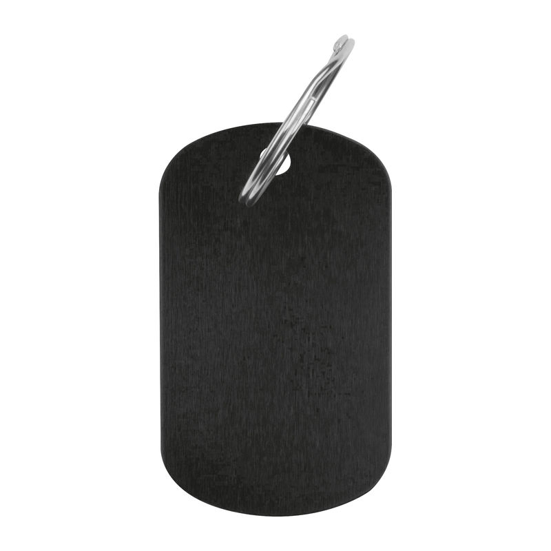 Stylish key fob made from recycled aluminium in the fashionable design of a dog tag. We engrave your logo on the metal plate.