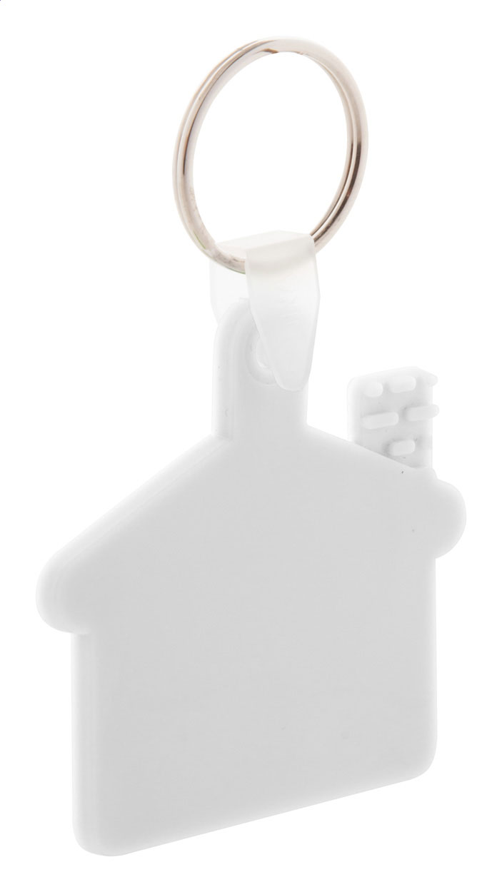 House shaped, plastic keyring with metal ring.