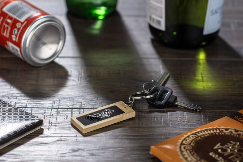 The ERO bamboo keyring is a lightweight and versatile promotional item, combining natural design with functionality.