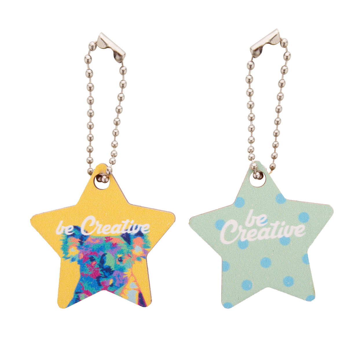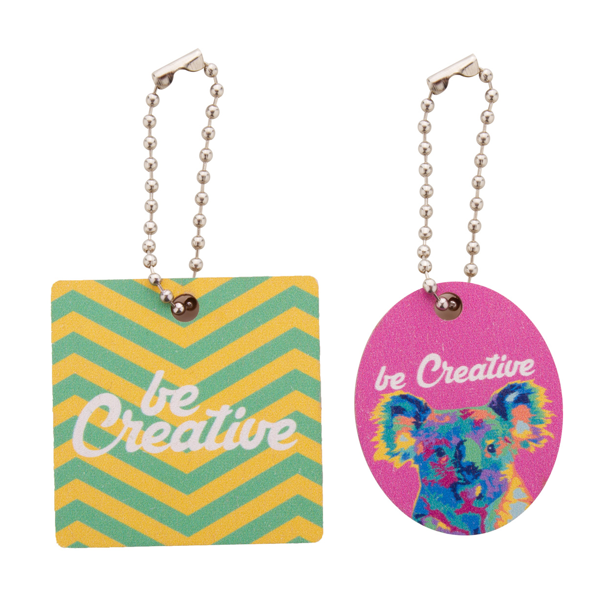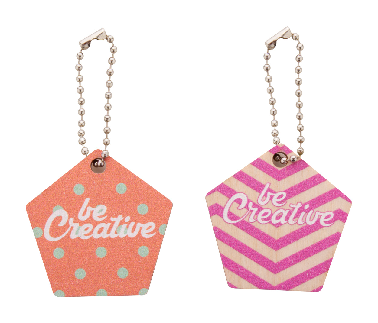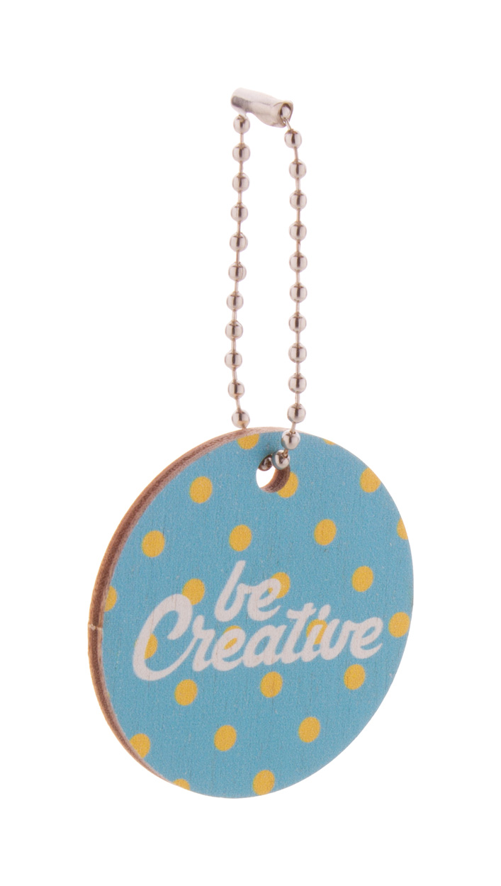 Custom made, birch plywood keyring with full-colour printing and metal chain. Produced in custom shape - maximum size: 45x45 mm. Price includes UV LED printing on one side. MOQ: 200 pcs.