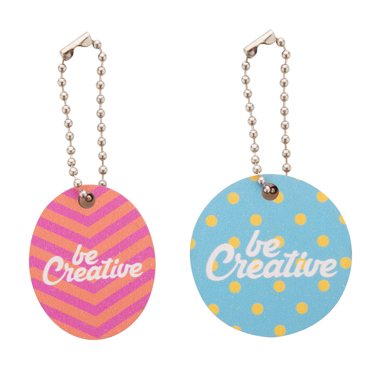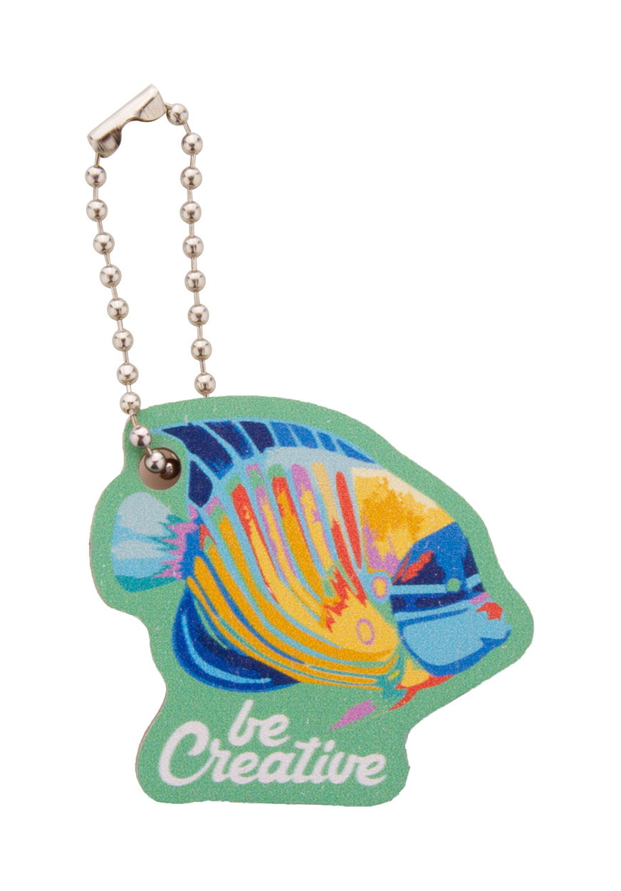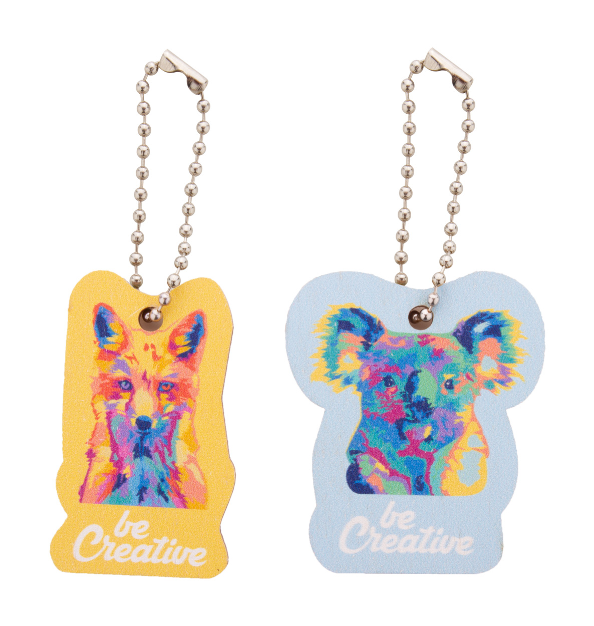 Custom made, birch plywood keyring with full-colour printing and metal chain. Produced in custom shape - maximum size: 45x45 mm. Price includes UV LED printing on one side. MOQ: 200 pcs.