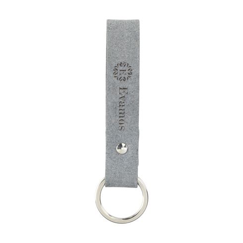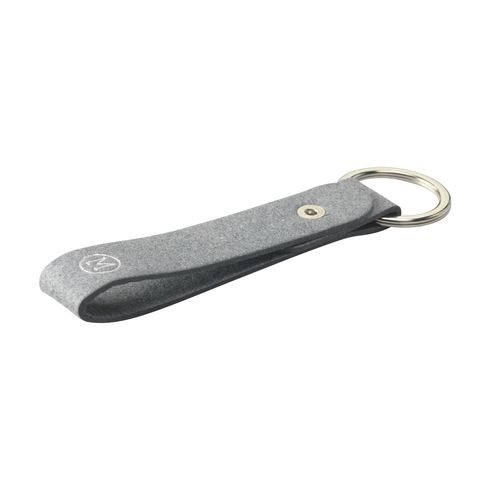 Keyring from the MADE out of brand. This keyring is made from recycled denim fibres: 70% denim waste, 25% binders and 5% vegetable additives. It has a fine, modern-looking texture. Fine fibres make this flexible material comparable to real leather. It is 100% recyclable and can be reused repeatedly. Due to the use of denim waste, mainly from the Netherlands and Germany, this product has a blue colour. Supplied with a sturdy metal keyring. A recyclable product with a contemporary look. Handmade. Dutch design. Made in Holland.