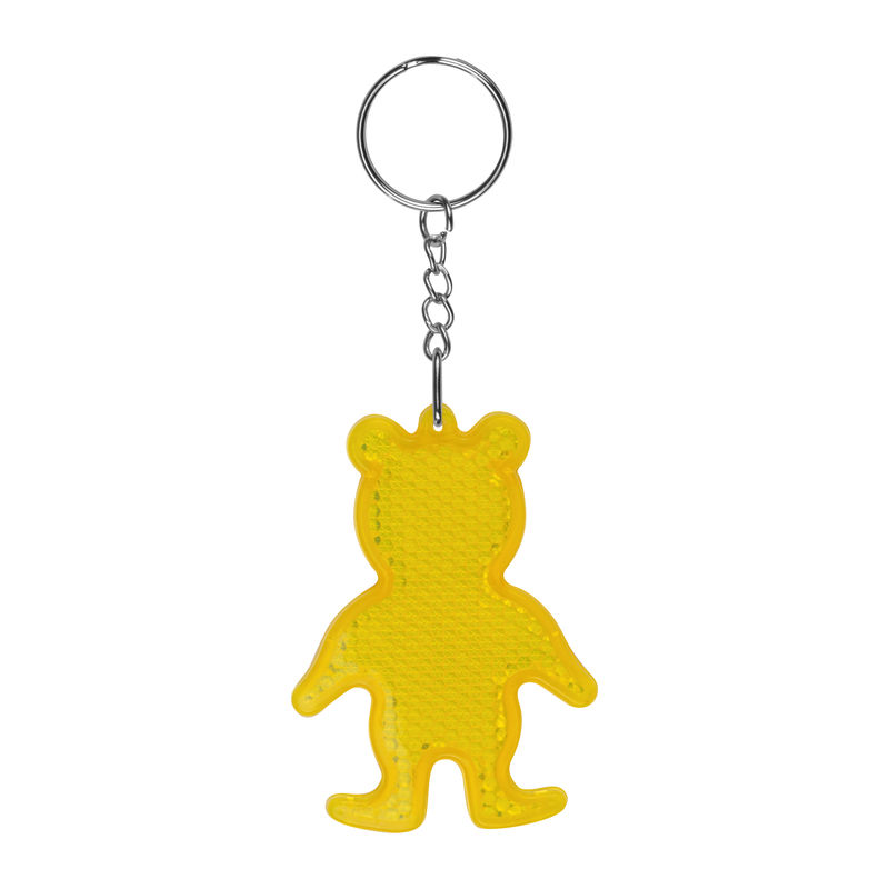 Reflecting Keyring in the shape of a bear. Your logo will be printed on the bear.