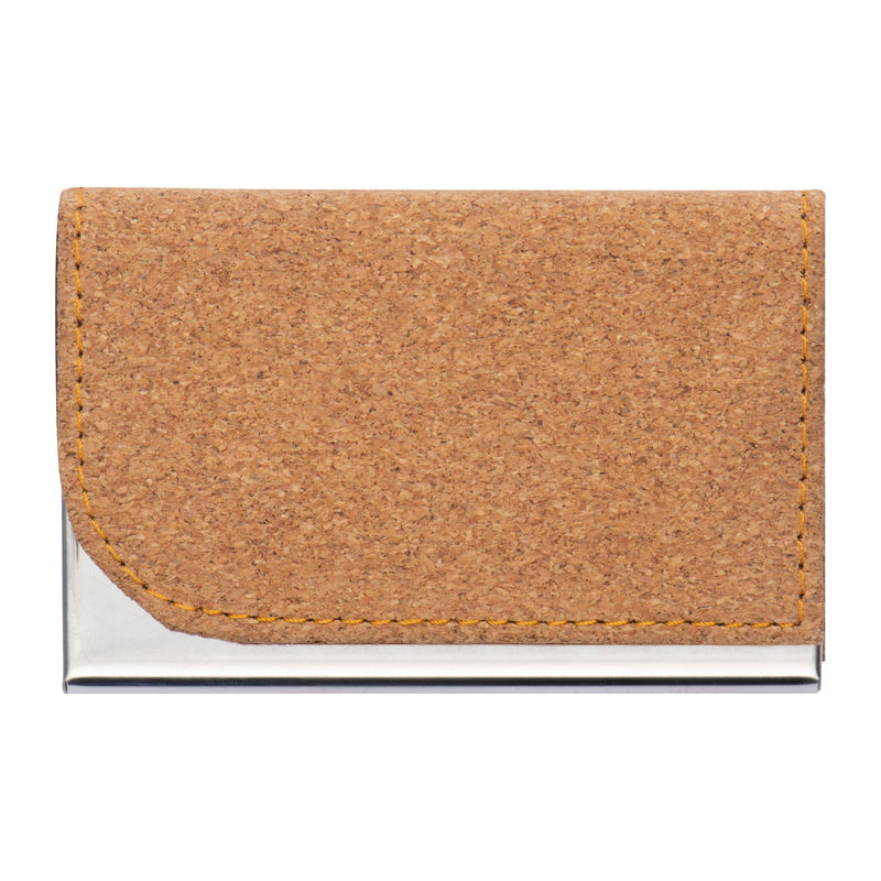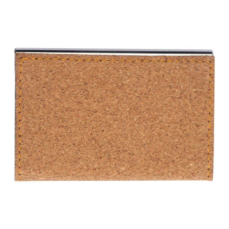 Metal business card holder with cork surface