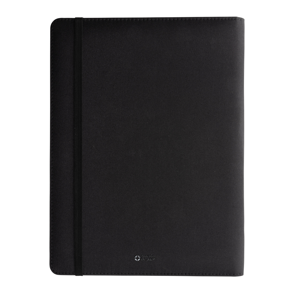 Crafted from 100% AWARE 300D recycled polyester and RCS certified recycled PU, this portfolio blends style and low impact. It features business card slots, pen loop, and a spacious A4 pocket. Stay organized with the refillable A4 lined notepad (20 pages 70 gsm) made from FSC® mix cream paper. Experience sophistication with a conscience. Made with 100% recycled polyester embedded with the AWARE™ tracer. Packed in an FSC® gift box.