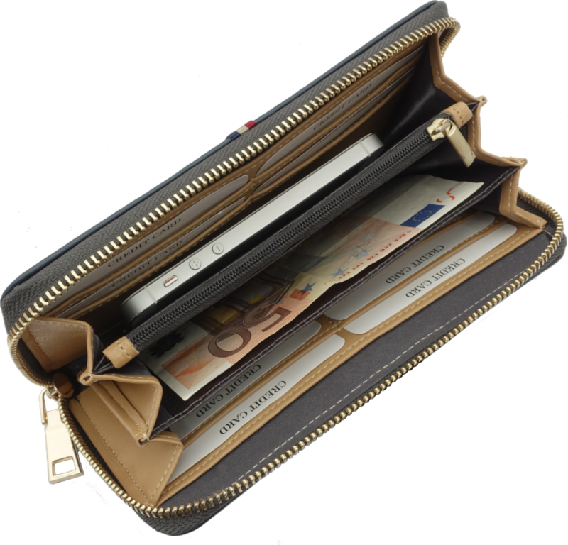 5 document pockets8 credit card pocketsBanknote pocketZipper closureZippered coin compartmentPaper box included