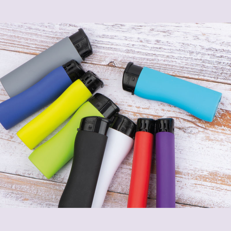 Ergonomically shaped electronic lighter available in vibrant colours, refillable with an infinitely adjustable flame.