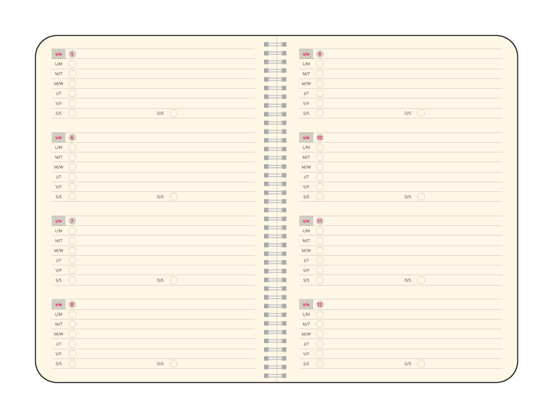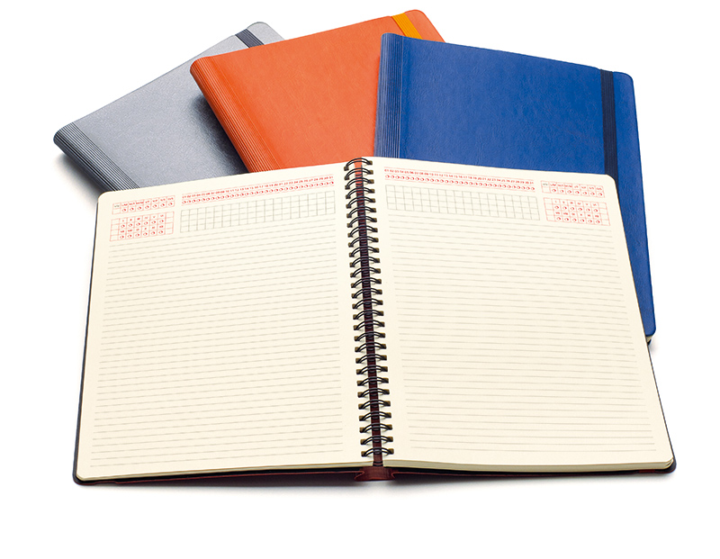 Finisare: spiră metalică neagră • copertă specială tip poliuretan (PU) • elastic asortat în ton cu coperta