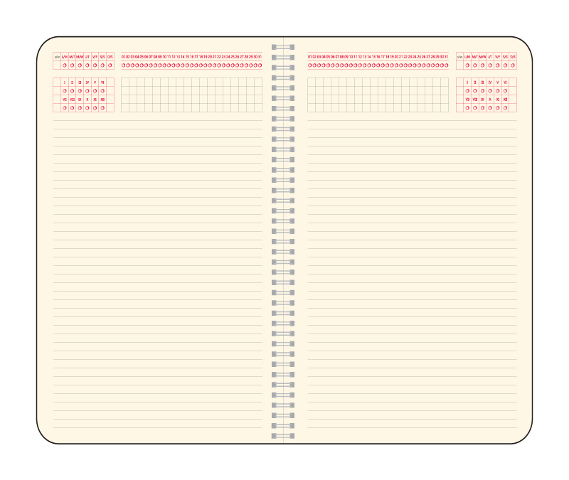Finisare: spiră metalică neagră • copertă specială tip poliuretan (PU) • elastic asortat în ton cu coperta