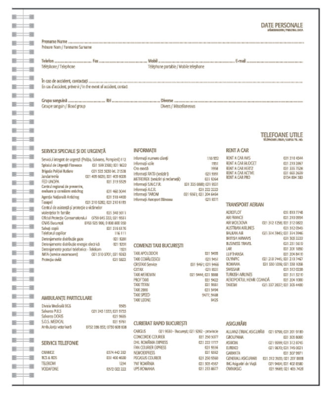 Agenda nedatata cu spira.