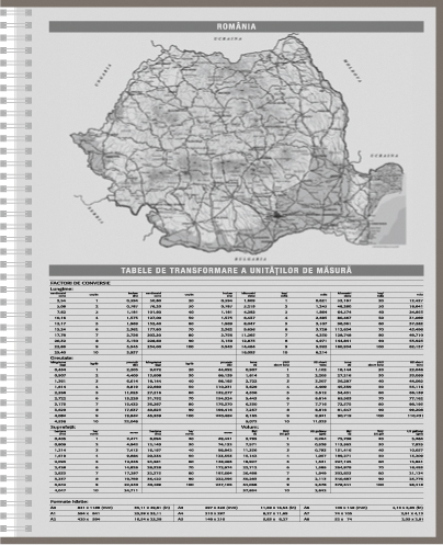 Printing: 1 culoare (gri), harti si informatii tiparite pe forzaţul asortat cromatic cu coperta