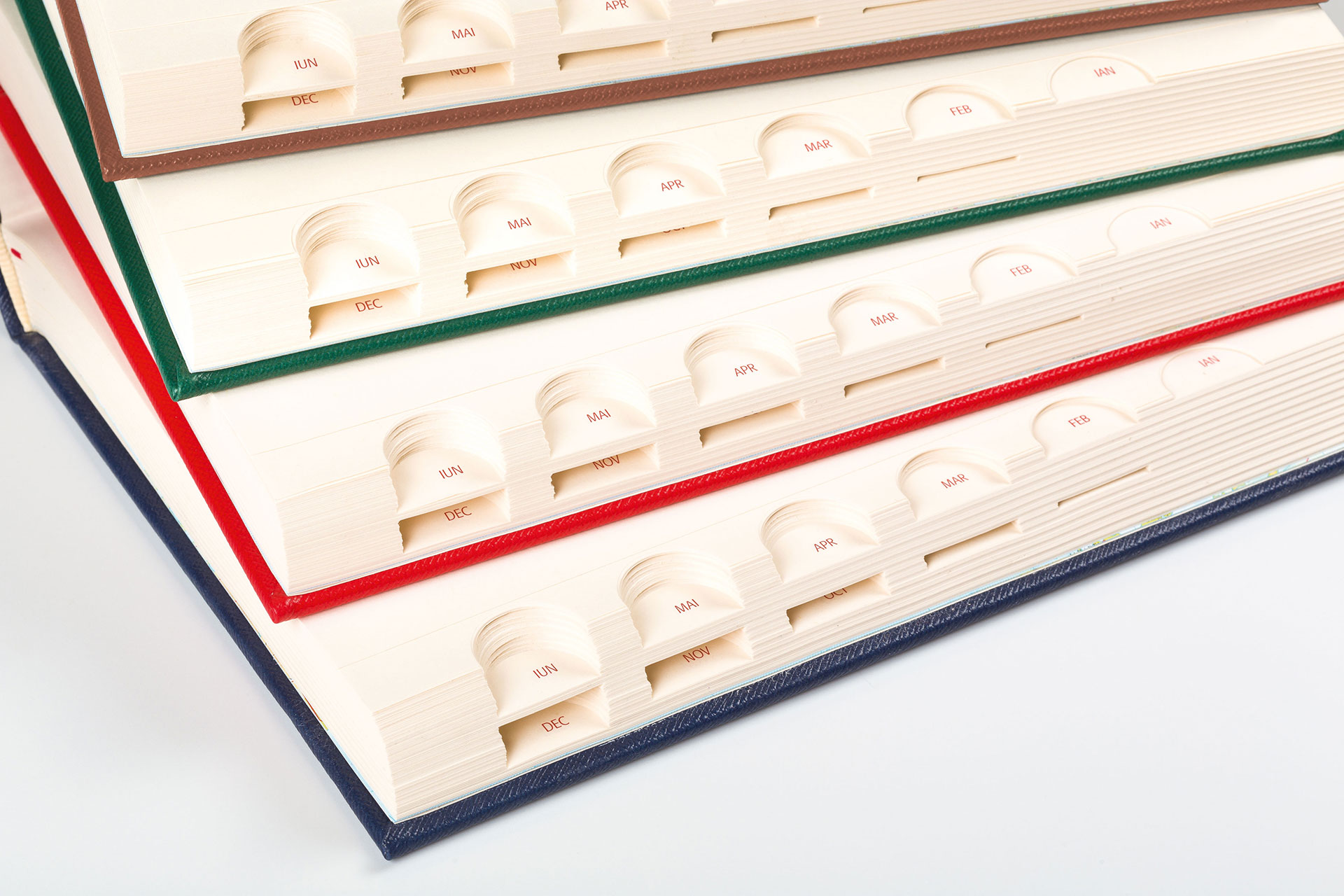 Finishing: cusuta, legata, coperti buretate,stantata tip index, semn carte rosu, banda capital rosie.