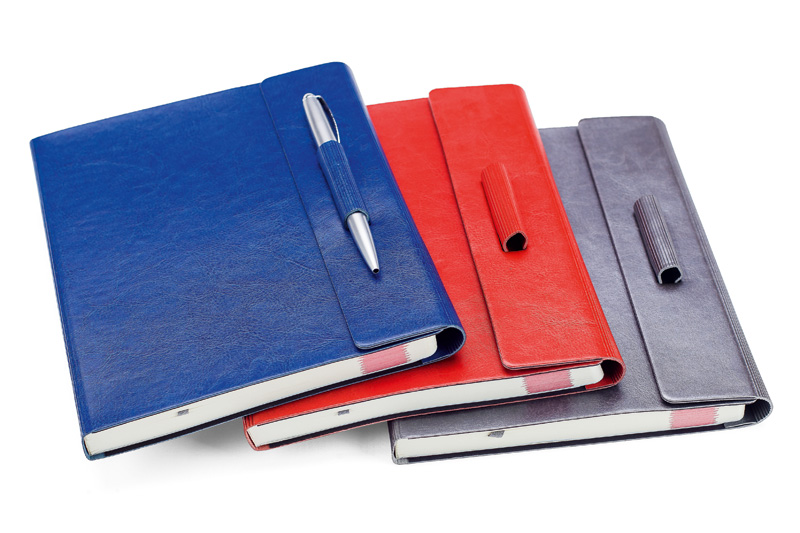 Finishing: brosata (PUR), coperta flexibila cu clapa si sistem de prindere instrument de scris,