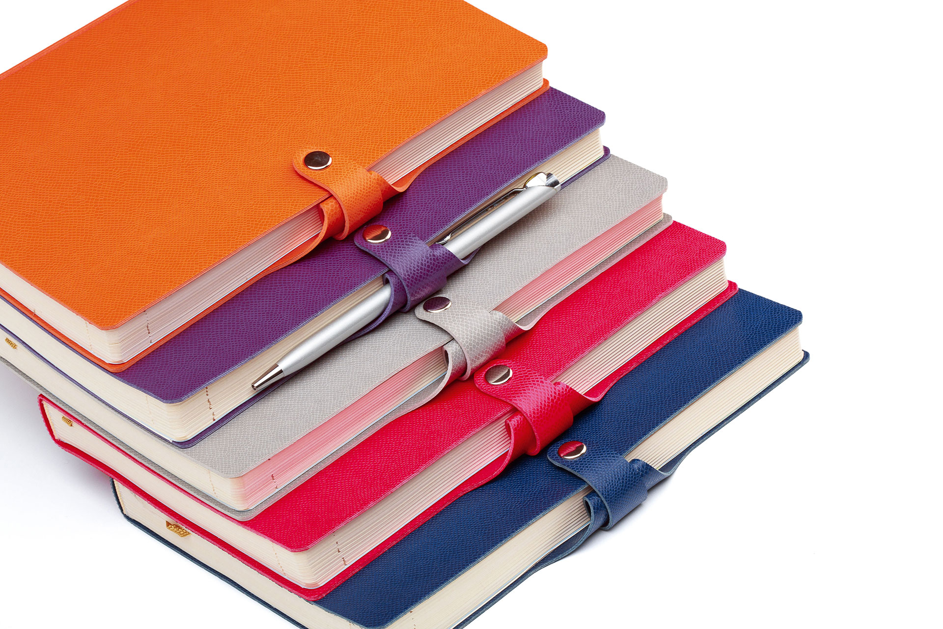 Finishing: brosata (PUR), coperti flexibile, cu sistem de inchidere cu capsa si suport pentru instrument de scris,