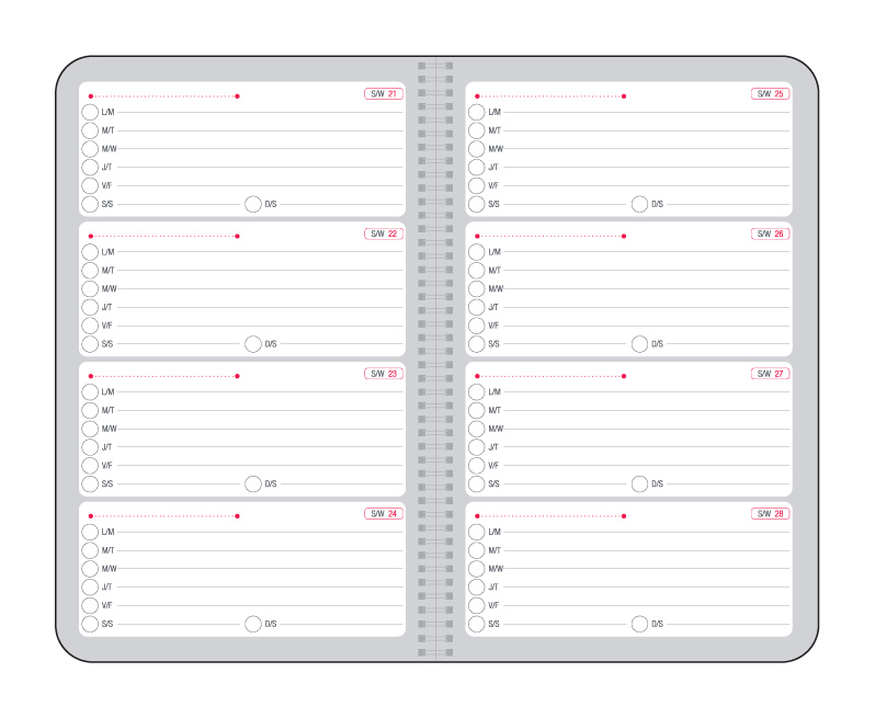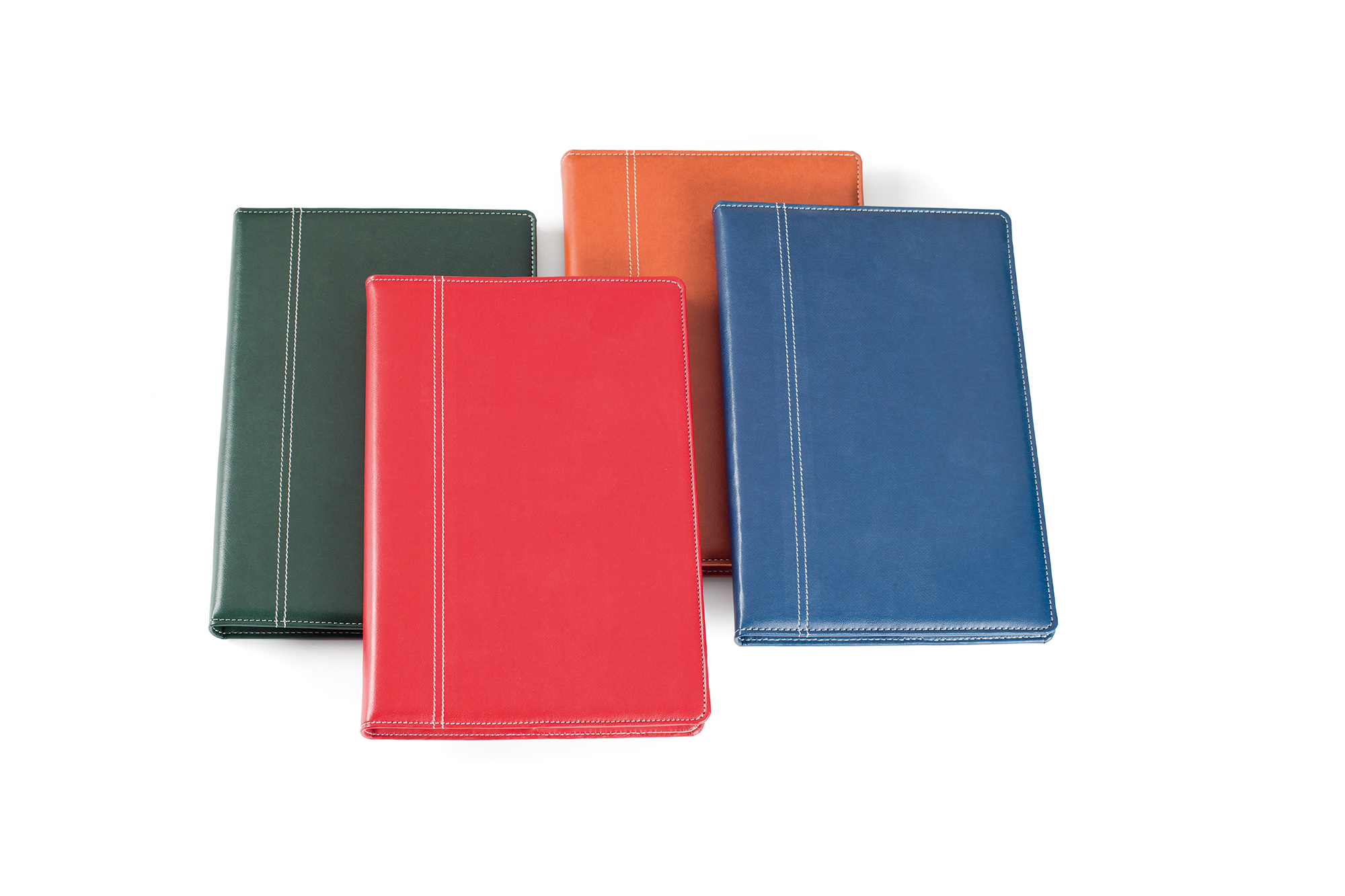 Finishing: spira metalica argintie, cop. buretata speciala, cusuta perimetral si stantata pentru carti de vizita, colturi rotunjite bloc si coperta.
