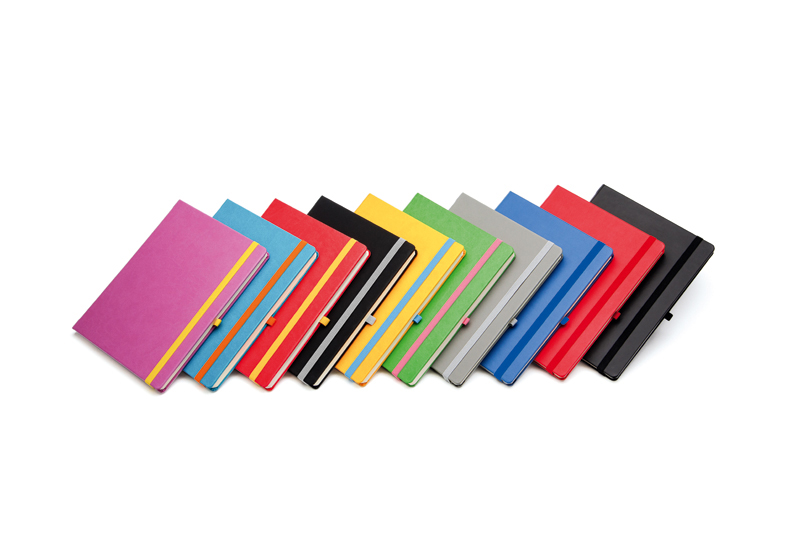 Finishing: Cusută, legată, finisare bloc specială, asigurând o deschidere de 180˚, colţuri rotunjite bloc și copertă, elastic asortat în ton sau în contra ton cu coperta, buzunar realizat din forzaţ spate, semn de carte negru, sistem de prindere din elastic pentru instrument de scris.