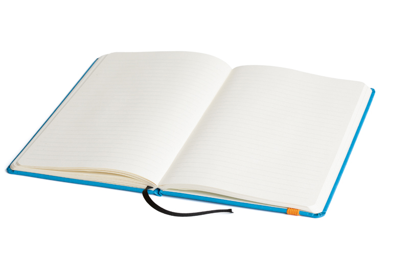 Finishing: Cusută, legată, finisare bloc specială, asigurând o deschidere de 180˚, colţuri rotunjite bloc și copertă, elastic asortat în ton sau în contra ton cu coperta, buzunar realizat din forzaţ spate, semn de carte negru, sistem de prindere din elastic pentru instrument de scris.