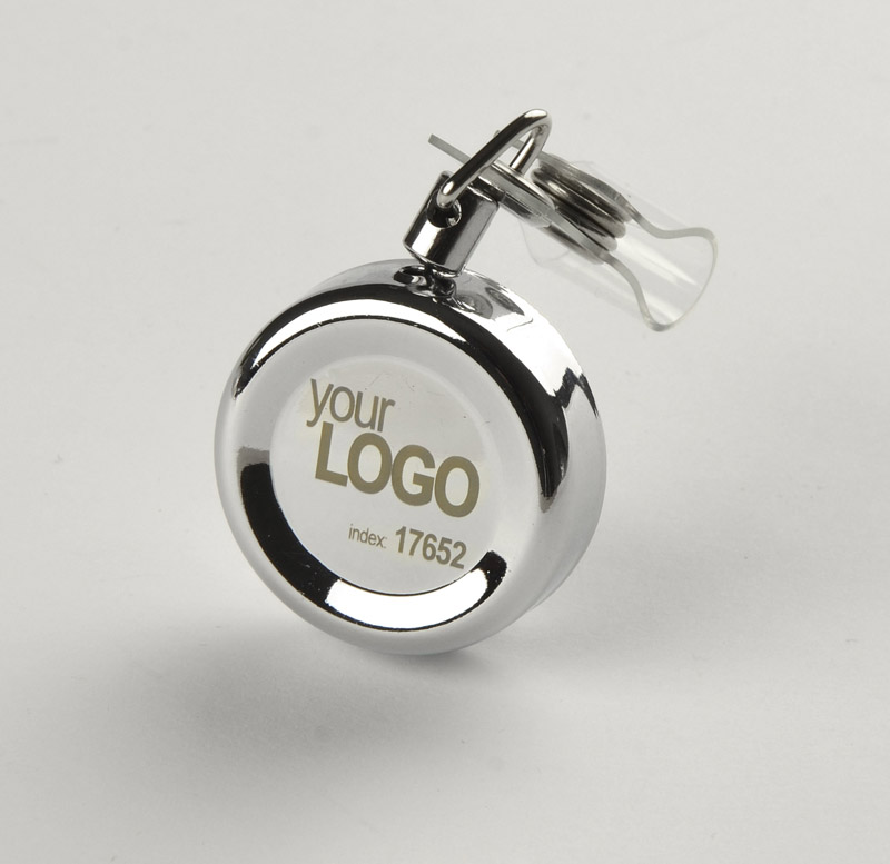 Skipass VIP is a durable and elegant product - it is made of metal and it's width is 3,2 cm. It has a metal clip and a 70 cm of elastic string that ends with a pass holder. Marking can be placed on the metal body of the product.