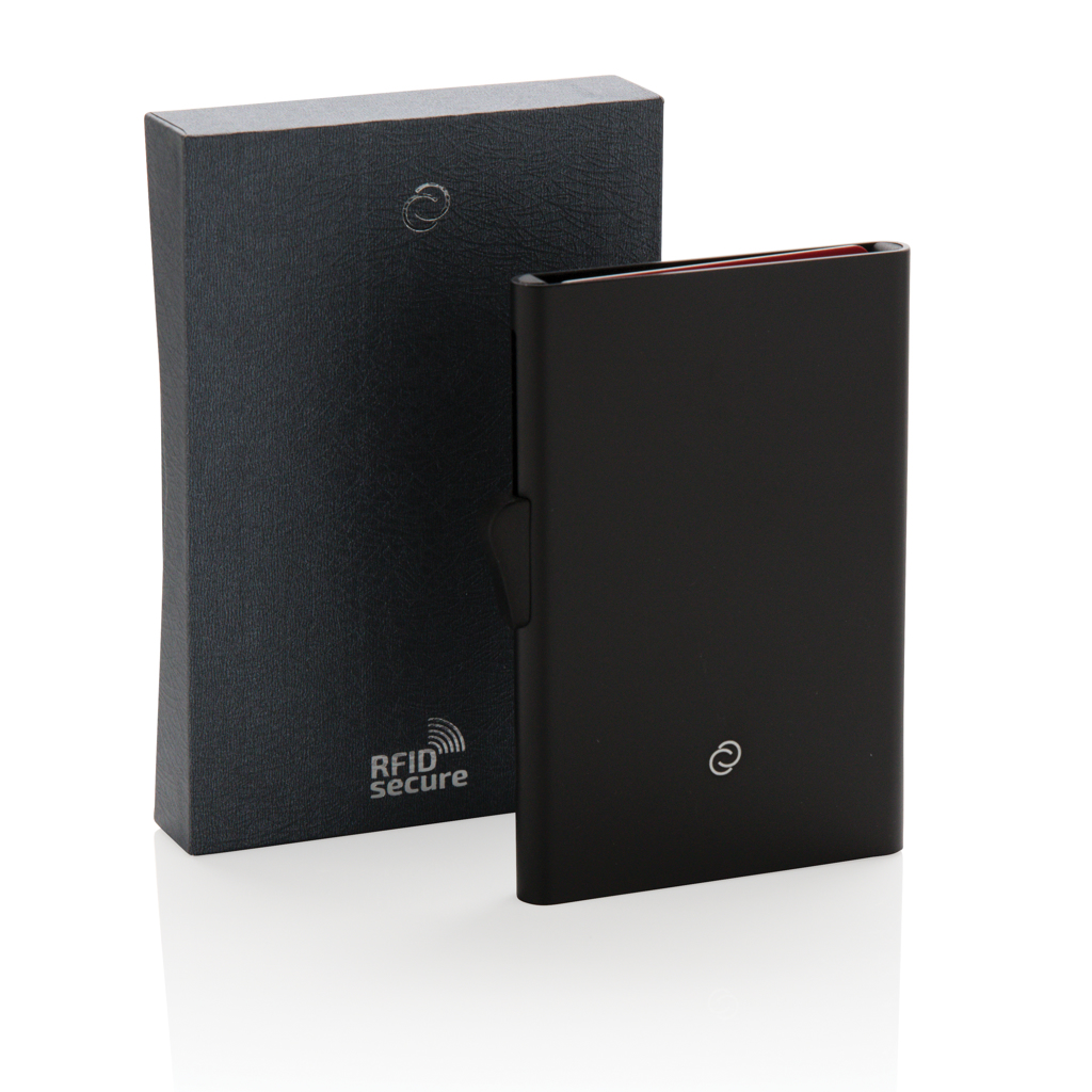 This solid aluminium card holder protects your most important cards against electronic pickpocketing. No more broken or bent cards. It can hold up to 7 cards or 5 embossed cards. Easy side slider will push the cards up gradually. NFC (13.56 MHz) Blocking.