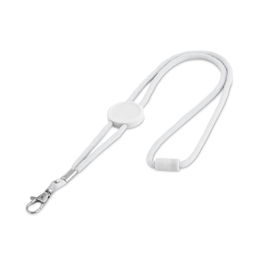 Adjustable polyester lanyard with metal karabiner, safety lock and slot for doming. ΓΈ5 x 450 mm